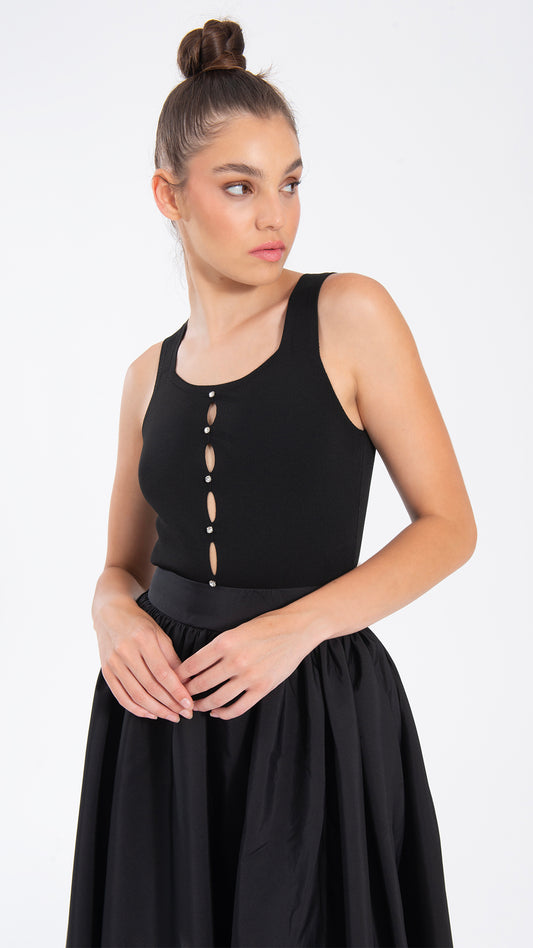 Top mit Schmucksteinen Schwarz